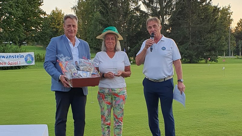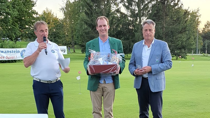 Als Clubmeisterin mit 19 Bruttopunkten durfte Angelika Sprenger den traditionellen Hut und einen neuen Kristallpokal mit dem Emblem des GC Neuschwanstein in Empfang nehmen. Bei den Männern setzte sich nach vielen Jahren Pause wieder einmal Florian Schmid (29 Punkte) durch. Er freute sich über das grüne Sakko des Siegers und erhielt ebenfalls den schönen Kristallpokal.