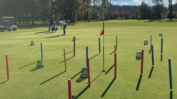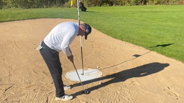 Im Spaß natürlich! Bei ihrem Turnier hatten sie sich so manche Herausforderung für die Teilnehmerinnen und Teilnehmer ausgedacht. Auf dem Grün mussten Hindernisse überwunden werden, die es dort normalerweise nicht gibt, Fahnenpositionen waren besonders - sogar mitten im Bunker. Und abgeschlagen wurde gelegentlich nicht vom frisch gemähten Rasen, sondern von der Europalette.